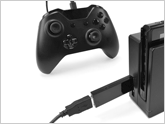 | ドックのUSBポートに挿してコントローラを繋ぐだけの簡単接続。有線接続なので遅延やコントローラの充電を気にする事なく、いつも通り快適なプレイがお楽しみいただけます。 | ![]() |
