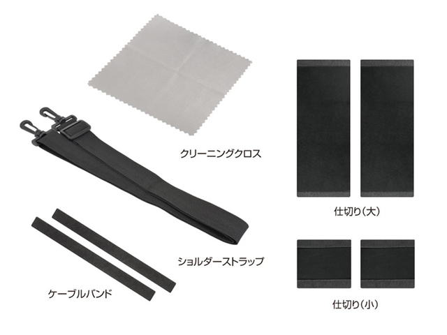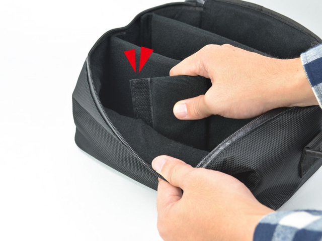 マジックテープで固定できる仕切り大×2 仕切り小×2を付属。 中に入れるものに合わせた、お好みのレイアウト変更ができます。 |
