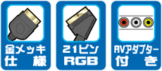本製品は、RGB対応モニターに接続することで、色彩のハッキリとした鮮明な画像をお楽しみいただけます。また、AVアダプター付きですので、別売のステレオAVケーブルを使用することで、ステレオAV端子付きテレビでもご使用いただけます。